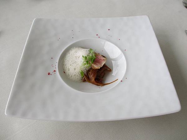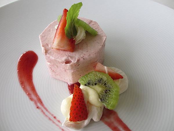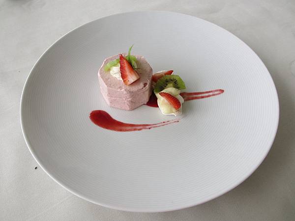 我們坐定位,服務生就送上一人一盤切的非常漂亮的奶油