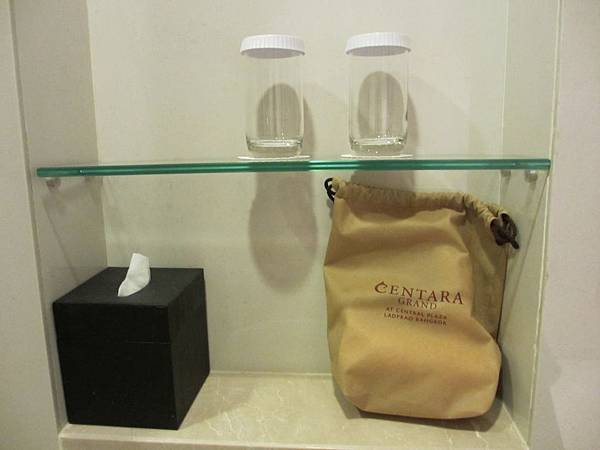 一旁架子上就是兩個杯子、一盒面紙