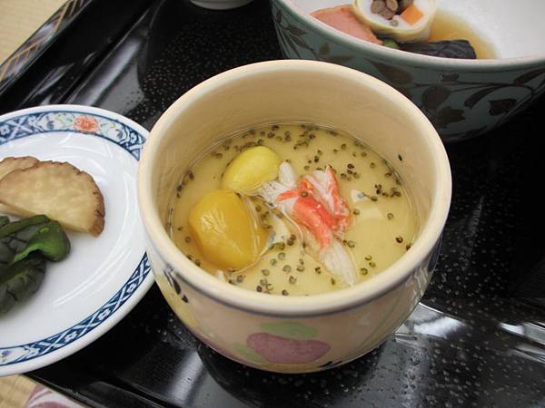 蛋香濃郁的蒸蛋加上大海的好滋味蟹腳、健康滿分的百果