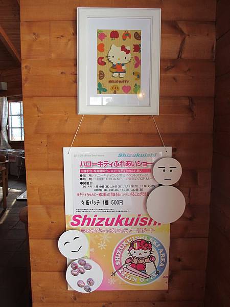 可愛的kitty還會俏皮的跟你說觀迎來到山中小屋喔!