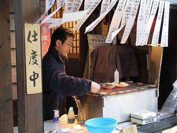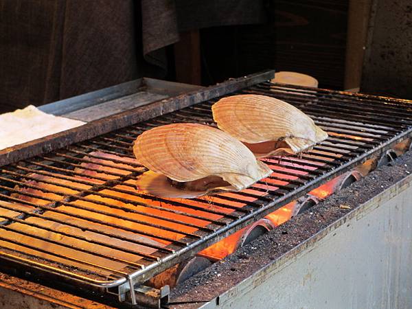 烤的爐火上的帆立貝滋滋作響、香味四逸