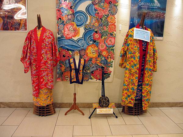 大廳有提供男人、女人、小孩沖繩的傳統服飾