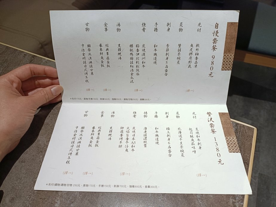 $1380 吃得到日本A5和牛,$980 則是澳洲和牛,另外就是生魚片分別是六品及五品