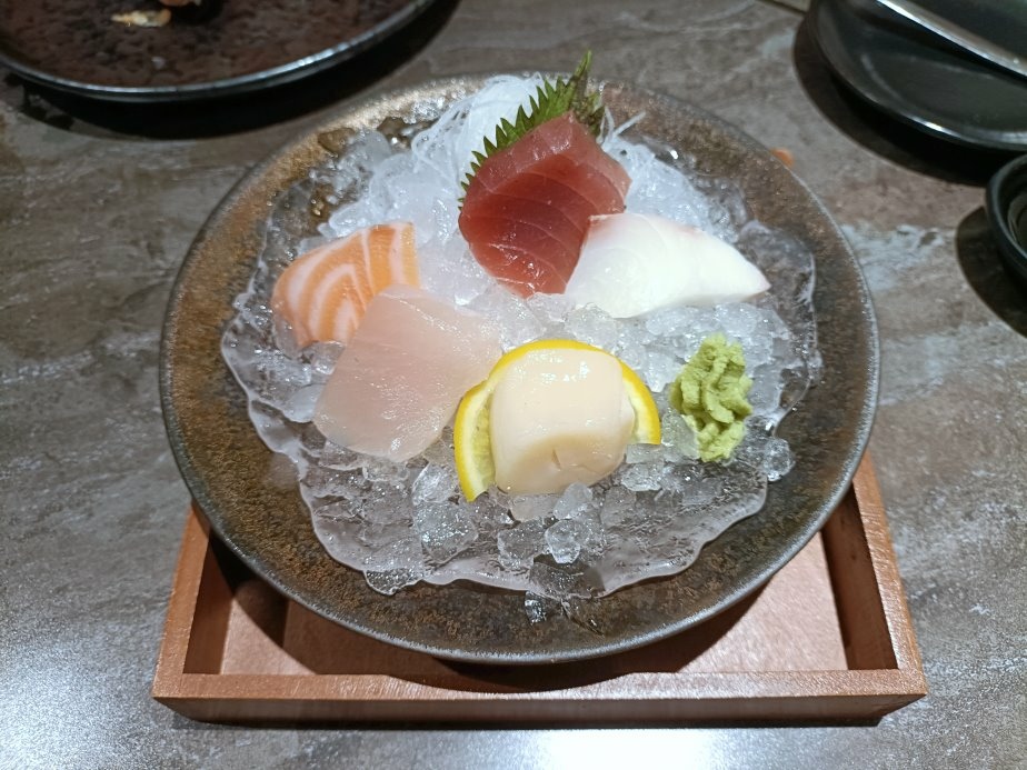 刺身有新鮮的綜合時令海鮮,附上現磨的山葵