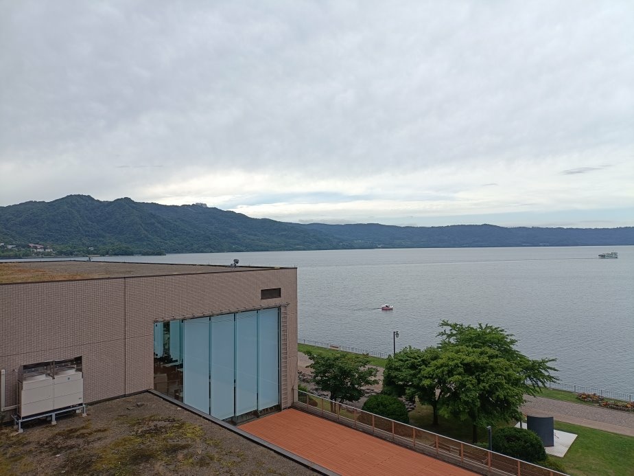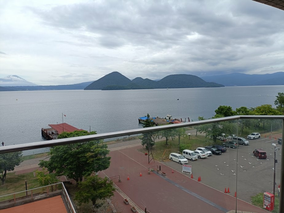 房間的落地陽台就可以180度把洞爺湖一覽無遺