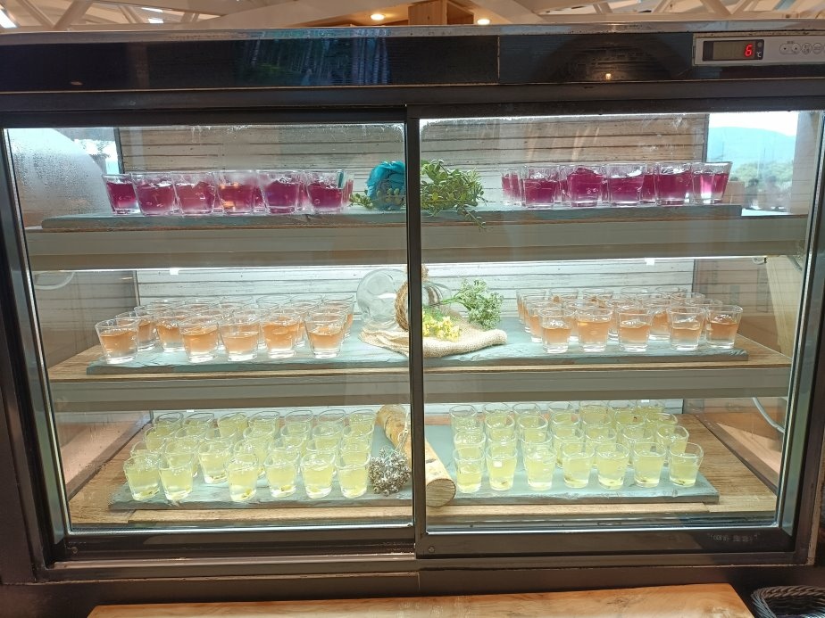 可所有的海鮮冷盤都用小杯、小盤呈裝