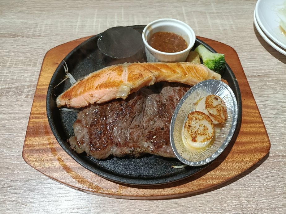 牛室特製牛排+經典海陸(奶油干貝*2/鮭魚)