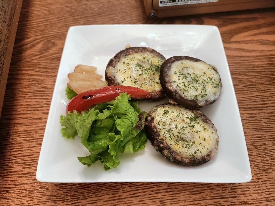 香菇的有烤到熟沒有生味、吃來又有香菇的湯汁配上濃郁的焗烤