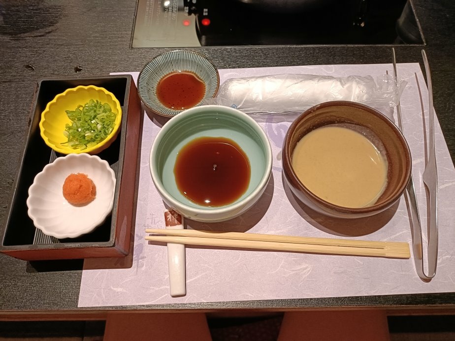 涮涮鍋請你沾上醬汁再依各人加入蘿蔔泥、辣椒、七味粉等等