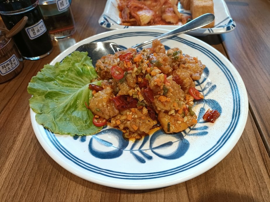 把泡菜、豆腐一起往嘴裡塞...還別說挺合拍的喔!