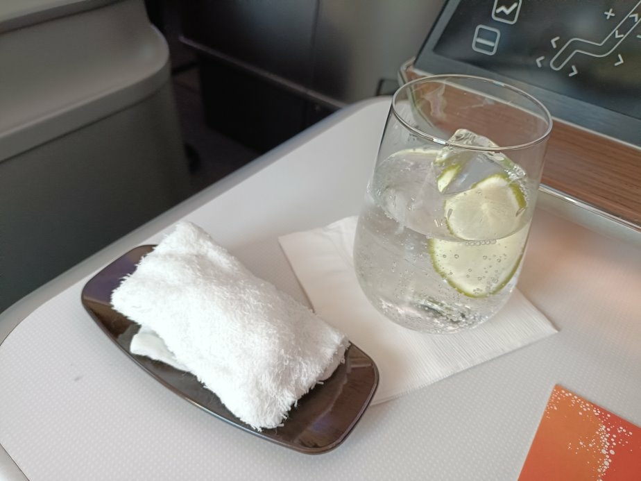 一上飛機就會先送來迎賓飲料和熱毛巾