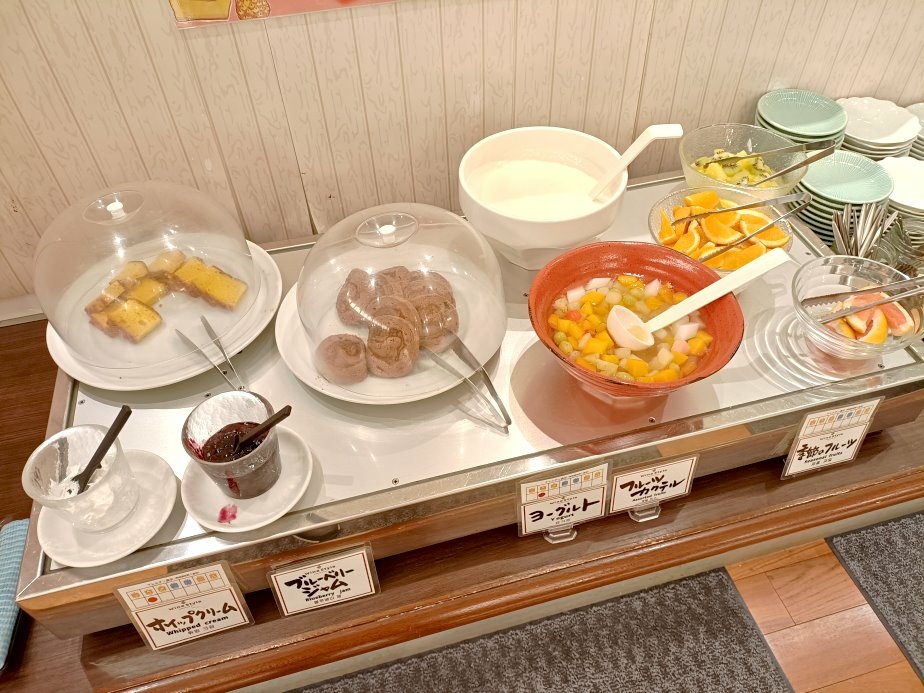 有綜合水果、葡萄柚、柳澄、優酪、巧克力蛋糕捲、蜂蜜蛋糕