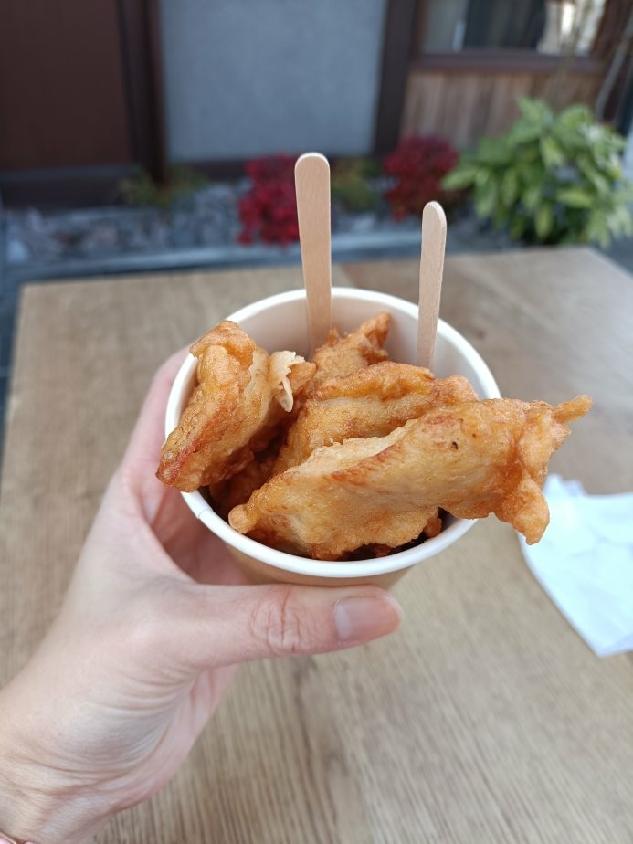 和台灣的不一樣,把雞胸肉切成薄片下鍋炸