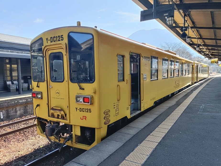 月台這只有兩節的小列車就是我們要搭前往大分的列車