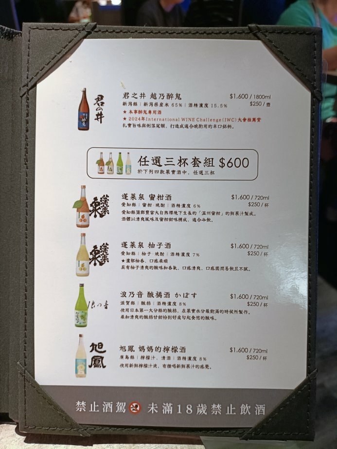可選沙瓦或無酒精飲品