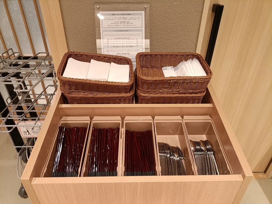 餐具、餐盤都要請自己拿取好再開始拿餐
