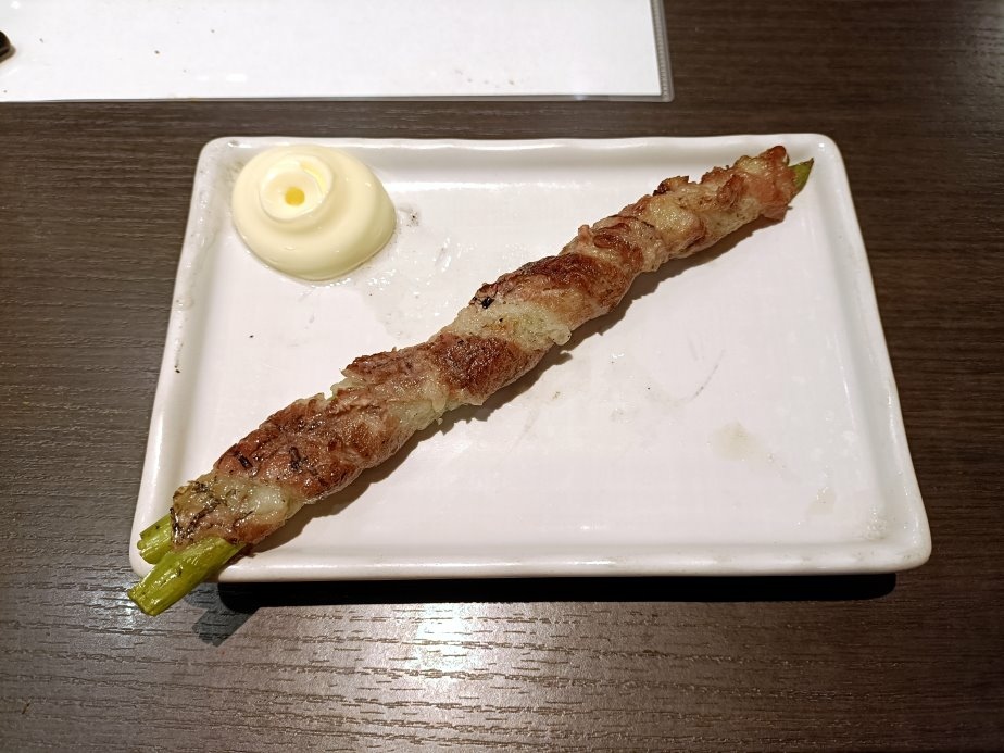 油花油脂偏多的五花肉包裏著新爽的蘆筍捲