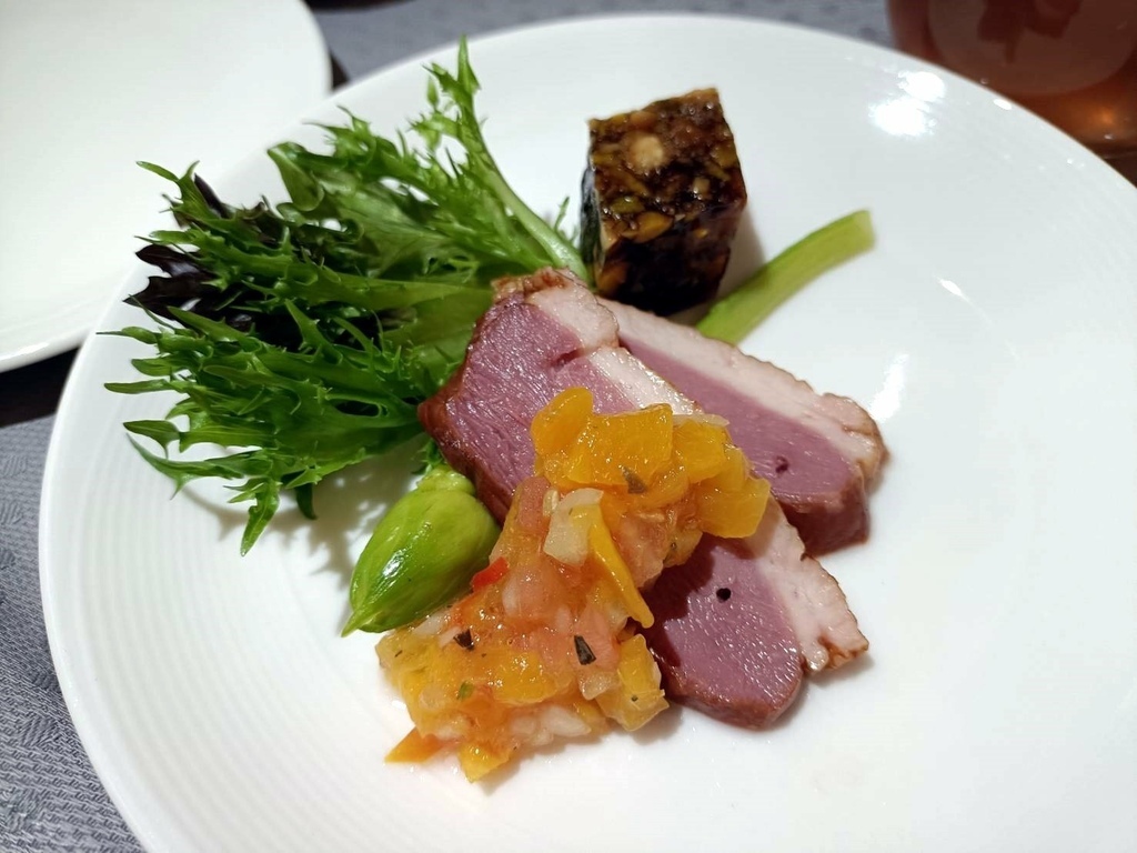 開胃美饌:煙燻鴨胸佐水蜜桃番茄莎莎醬 綜合核果凍
