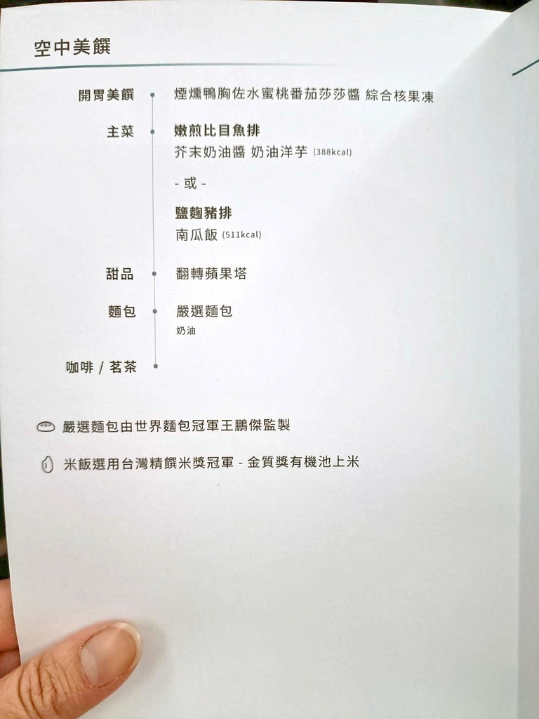 飛行時間很短,所以提供的晚餐選擇也較少