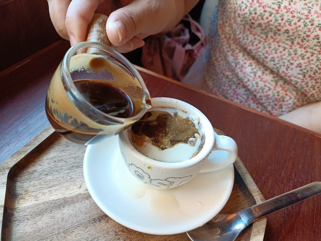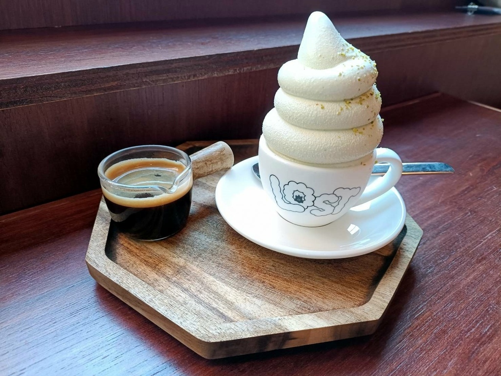 旁邊附上一杯濃縮咖啡,由客人自行添加