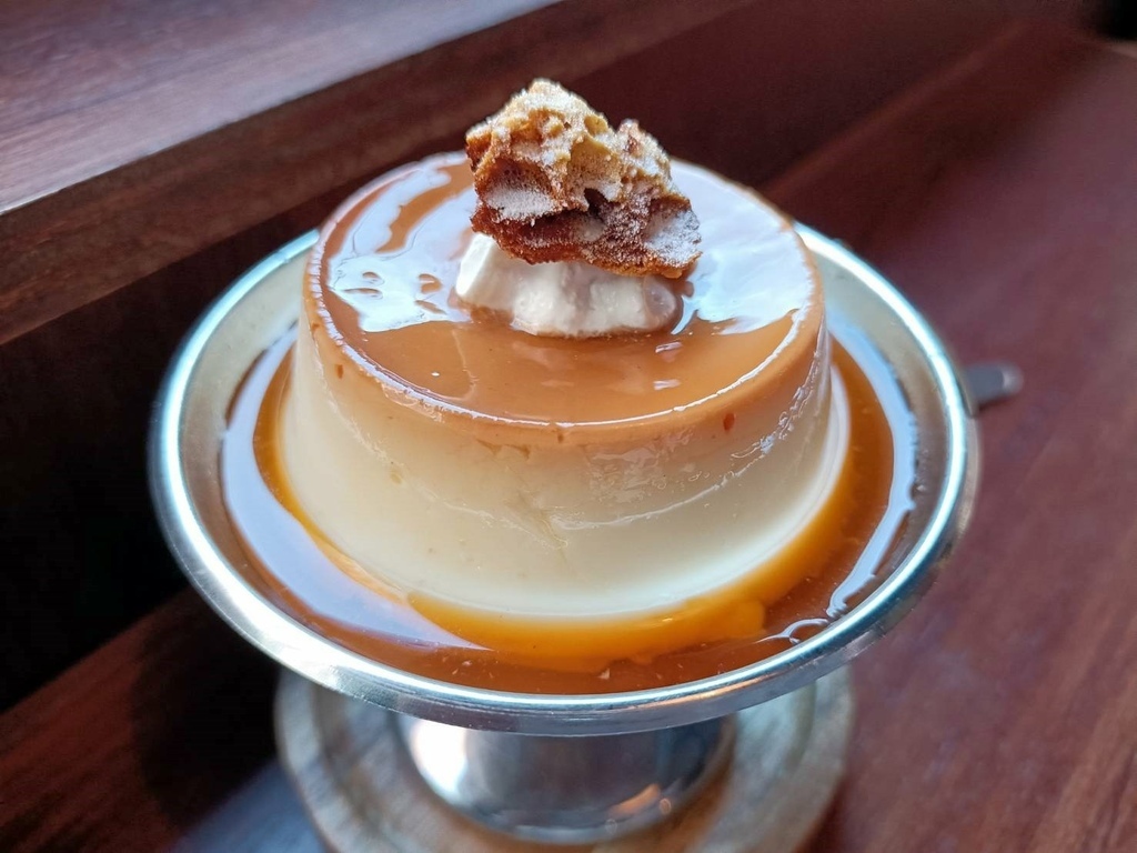 如果喜愛吃甜一點的朋友就多沾一些底下的焦糖醬