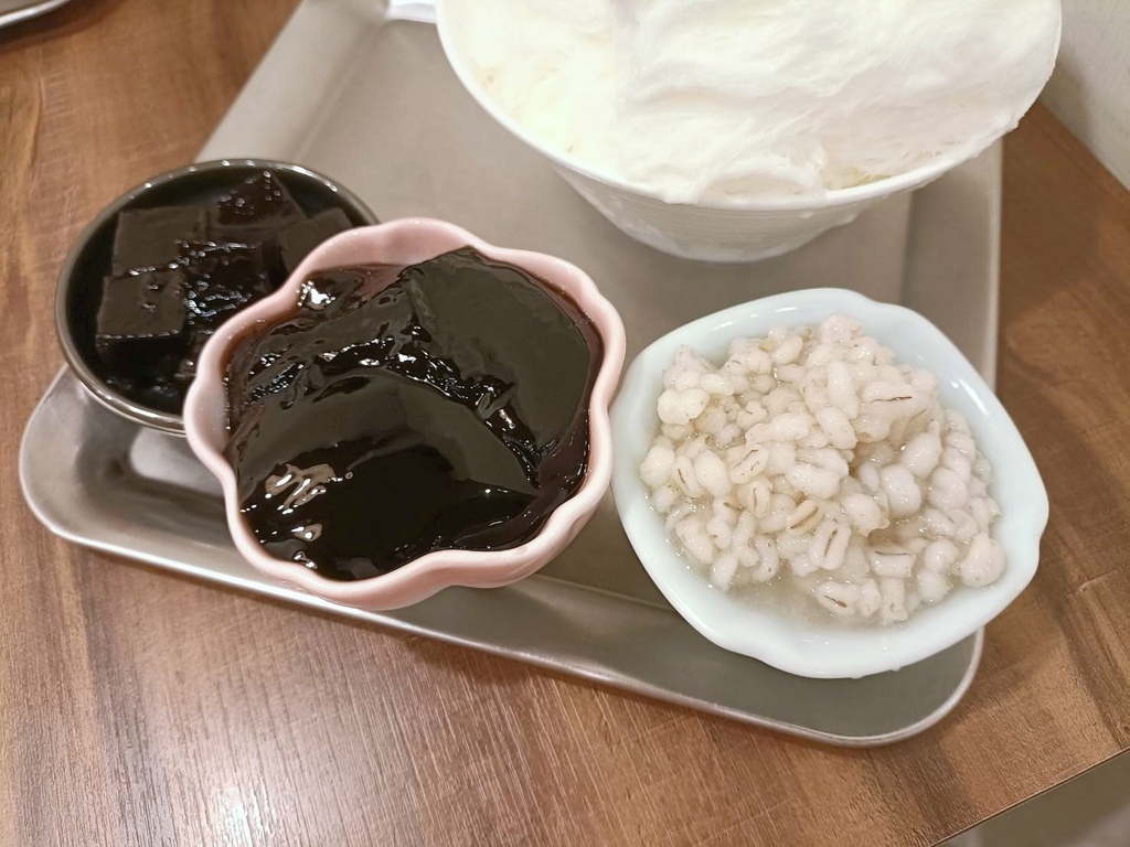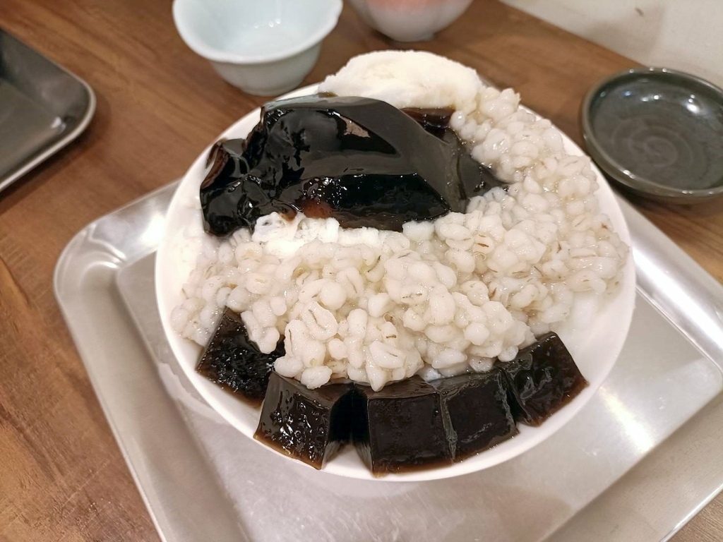 仙草凍微甜帶有布丁般的彈性、小薏仁微甜可增加口感
